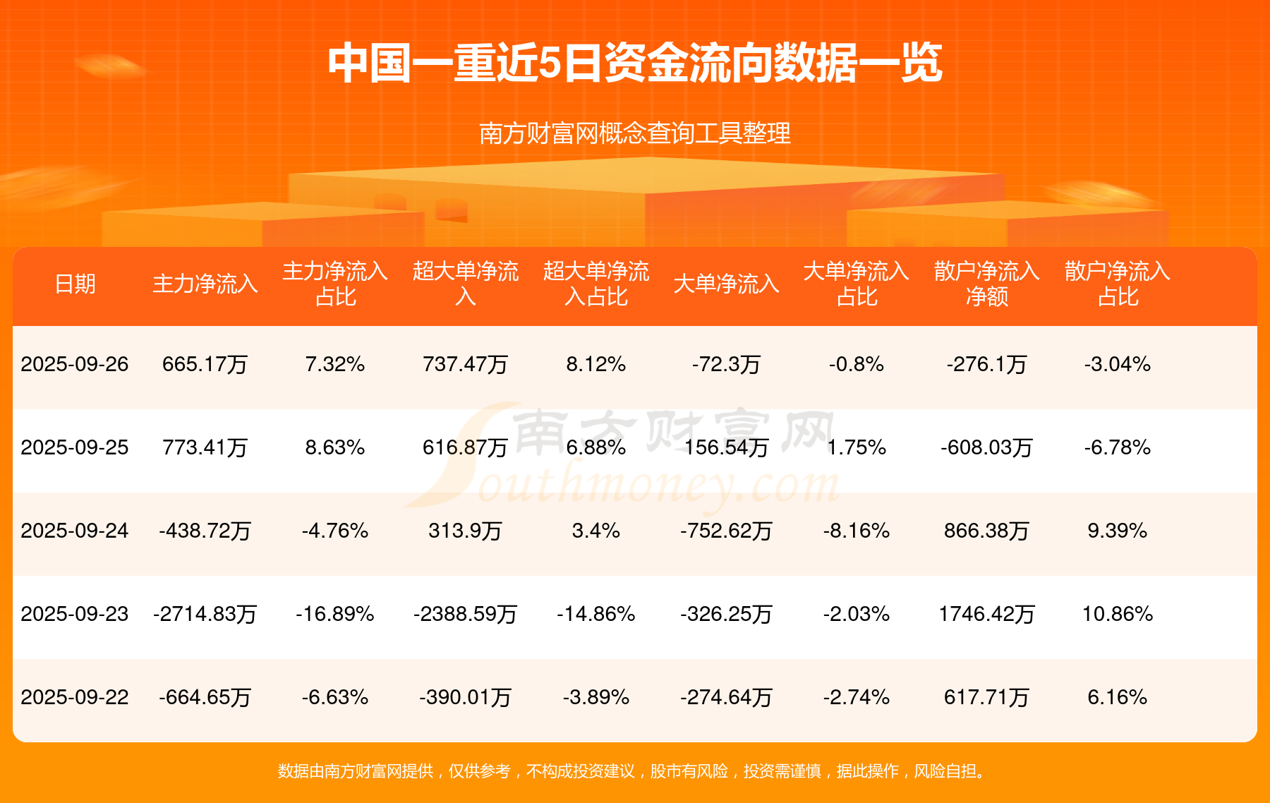 近5日資金流向一覽見下表: