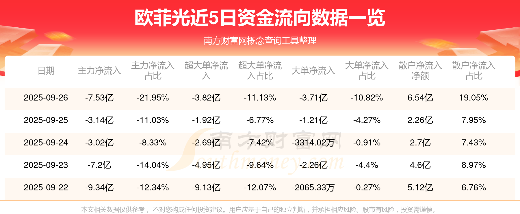 9月26日消息,歐菲光9月26日主力凈流出7.53億元,超大單凈流出3.82億元,大單凈流出3.71億元,散戶凈流入6.54億元。
