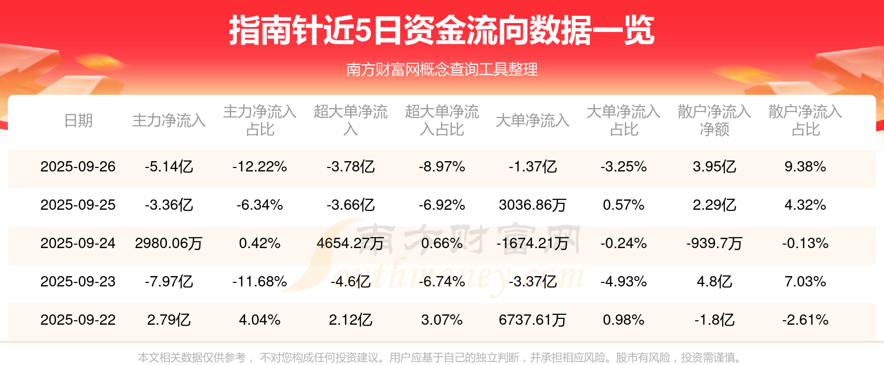 近5日資金流向一覽見下表: