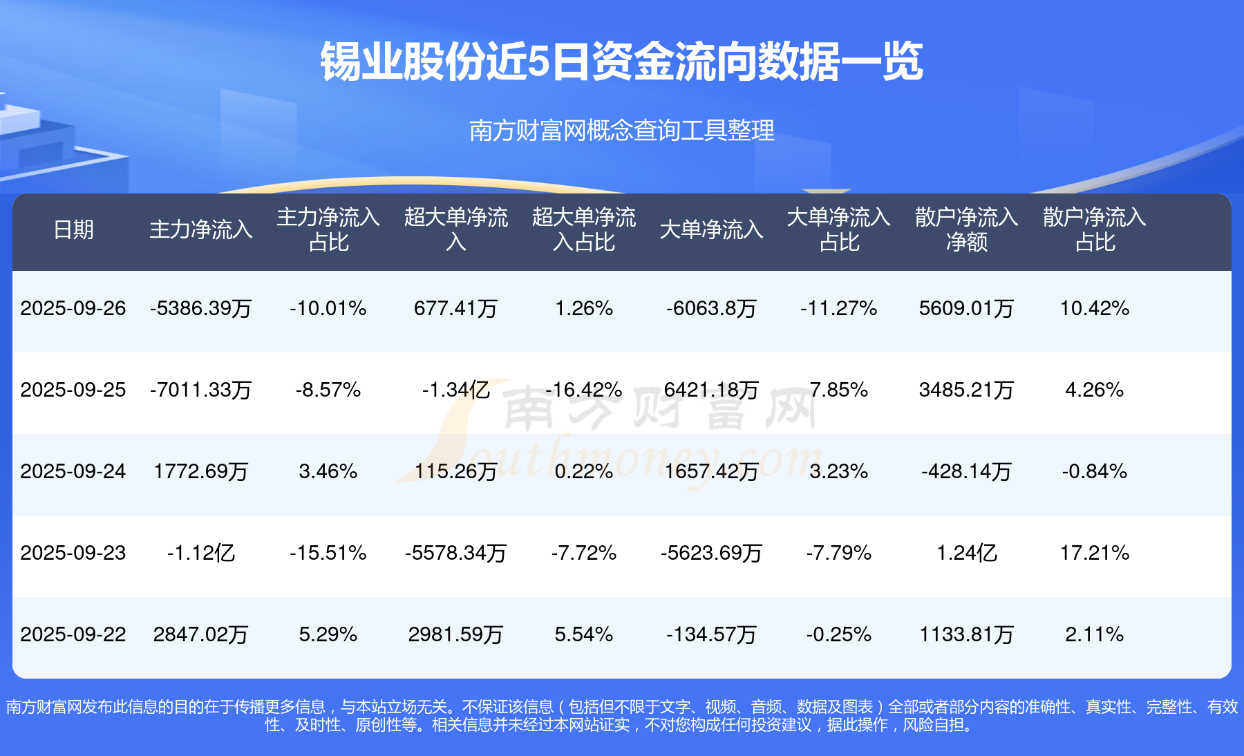 近5日資金流向一覽見下表: