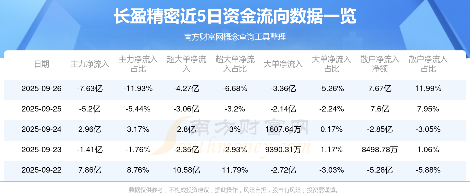 9月26日消息,長(zhǎng)盈精密資金凈流出7.63億元,超大單資金凈流出4.27億元,換手率12.27%,成交金額63.97億元。