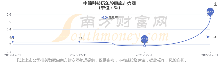 近年中簡(jiǎn)科技年度股息率走勢(shì)如下圖:
