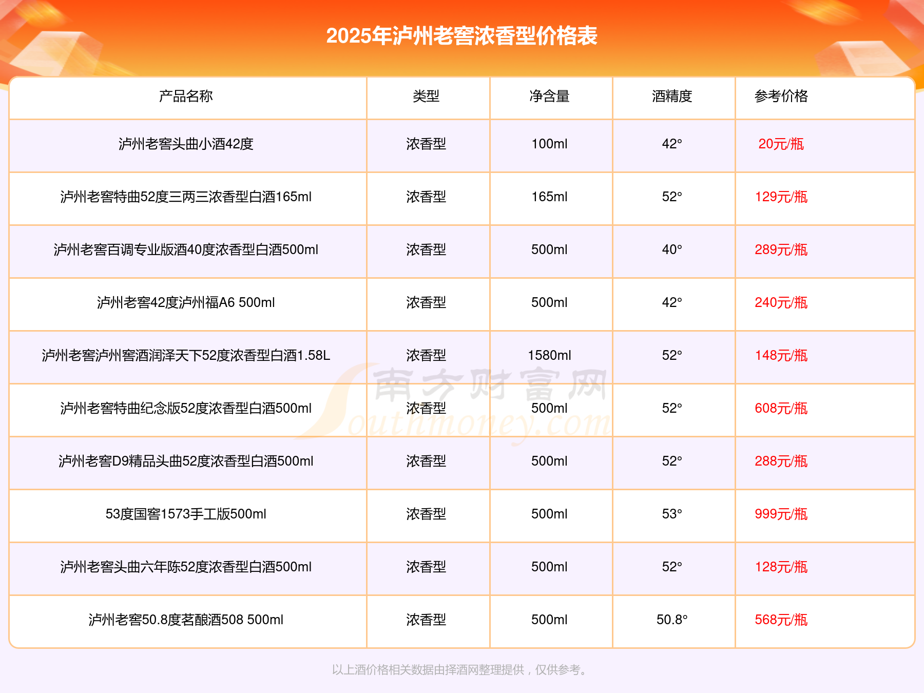 瀘州老窖濃香型酒最新價格2025: