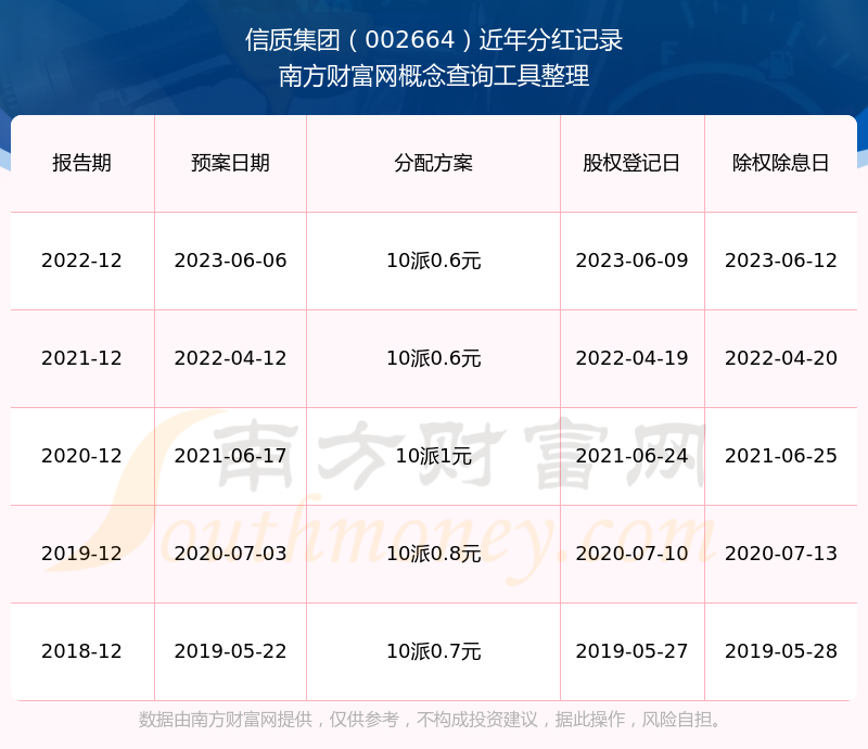 信質(zhì)集團(tuán)最新一次公布的分紅方案:10派0.6元。