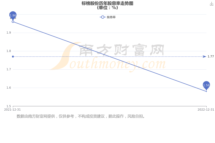 近年標(biāo)榜股份年度股息率走勢(shì)如下圖:
