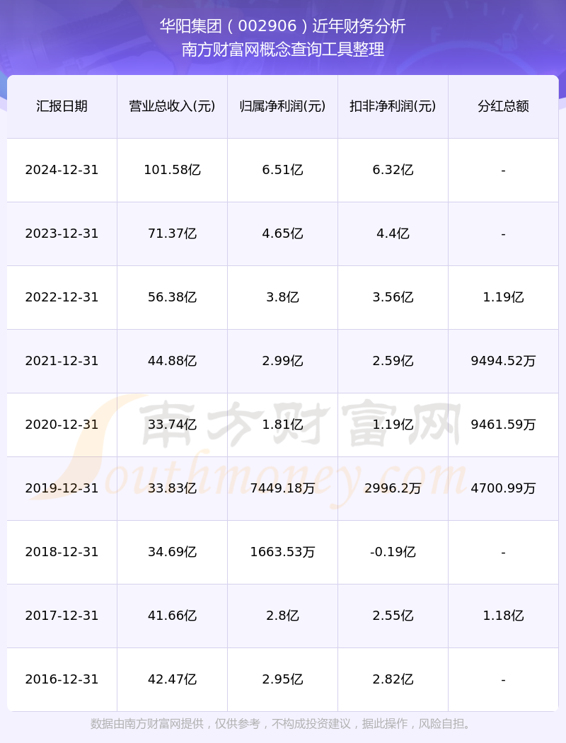2024年華陽集團(tuán)總營收101.58億,同比增長42.33%;凈利潤6.51億,同比增長40.13%;銷售毛利率20.69%。