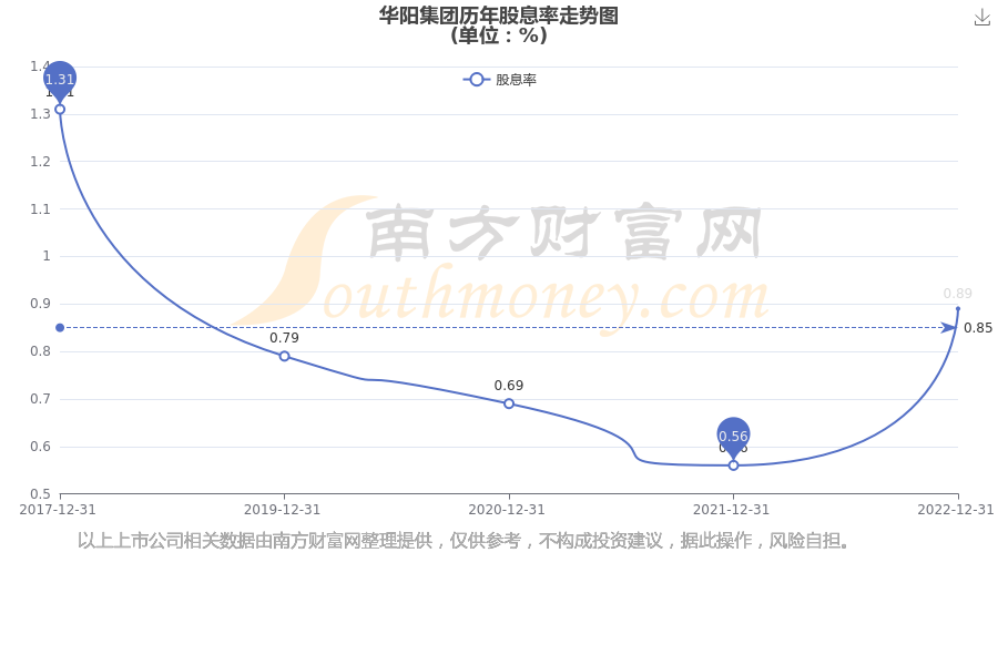 華陽集團(tuán)歷年股息率走勢如下圖: