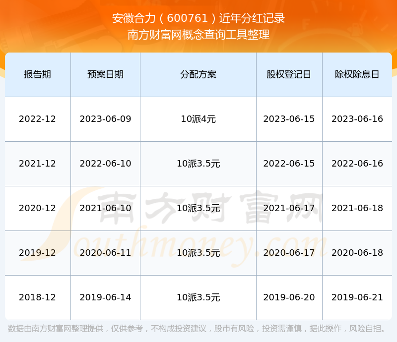安徽合力最新一次公布的分紅方案為10派4元。本次權(quán)益分派股權(quán)登記日為2023年6月15日,除權(quán)除息日為2023年6月16日,派息日為2023年6月16日。