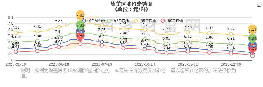 集美區(qū)12月26日92號汽油歷史油價調整走勢圖