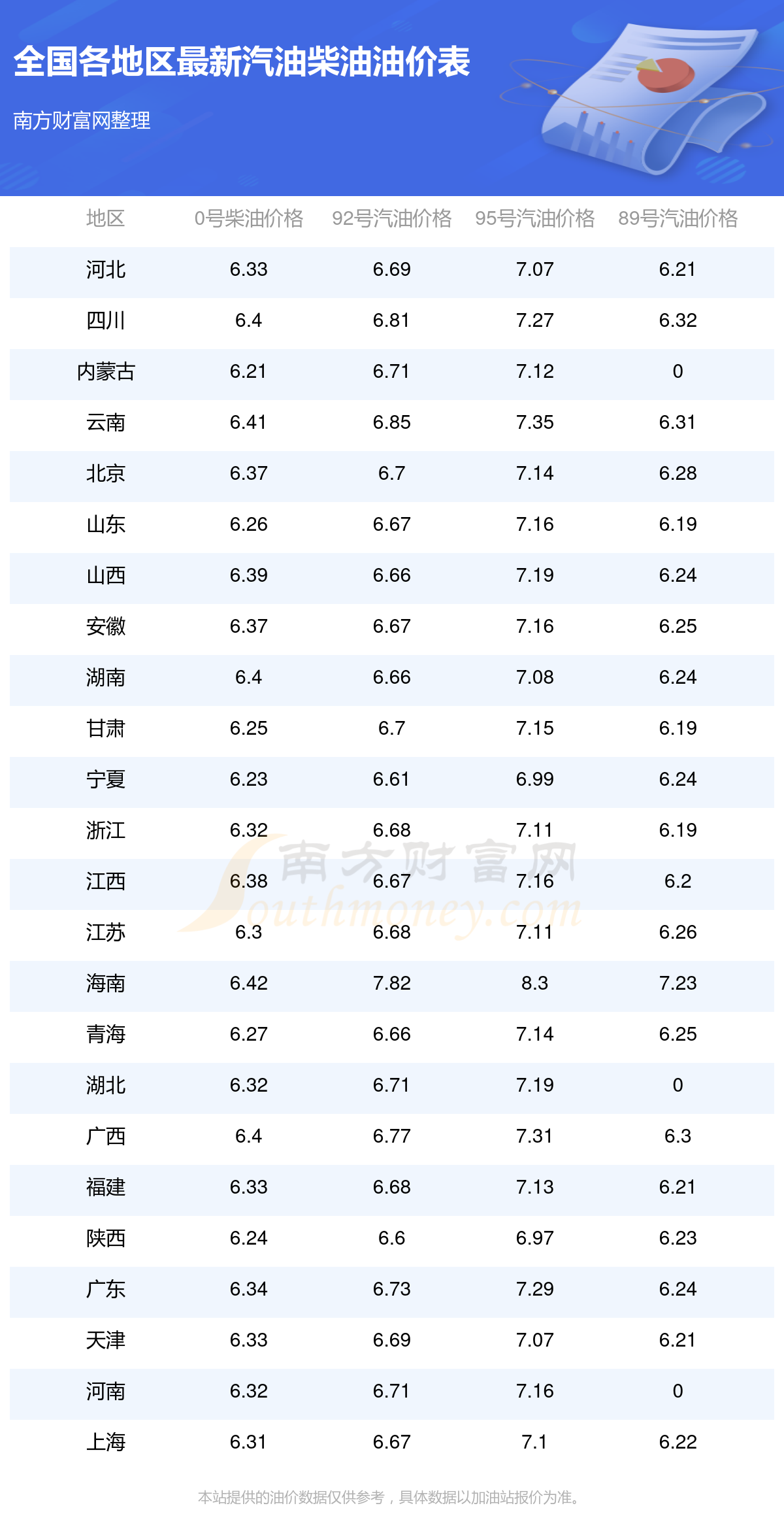 油價數(shù)據(jù)僅供參考,請以您所在地區(qū)的各加油站報價為準(zhǔn)。