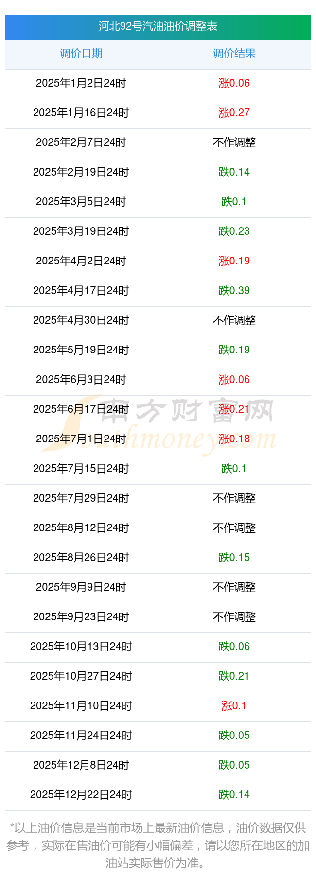河北新樂(lè)2025年油價(jià)調(diào)整時(shí)間及最新價(jià)格表