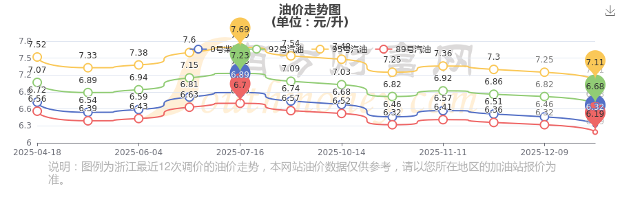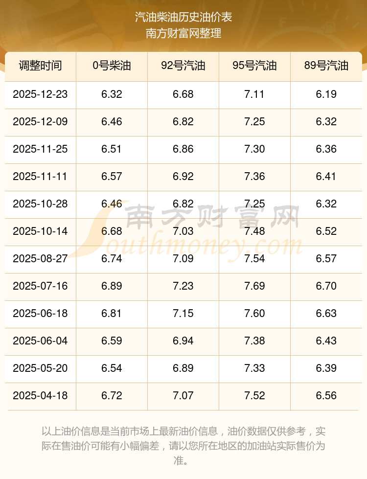 2025年95號(hào)汽油價(jià)格一覽表