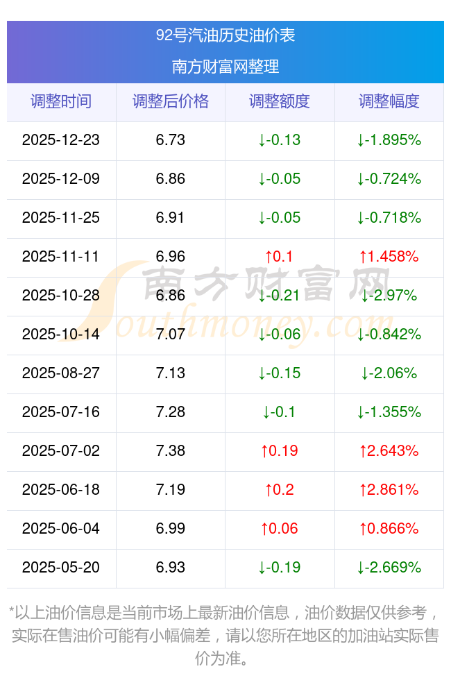 油價(jià)數(shù)據(jù)僅供參考,請(qǐng)以您所在地區(qū)的各加油站報(bào)價(jià)為準(zhǔn)。