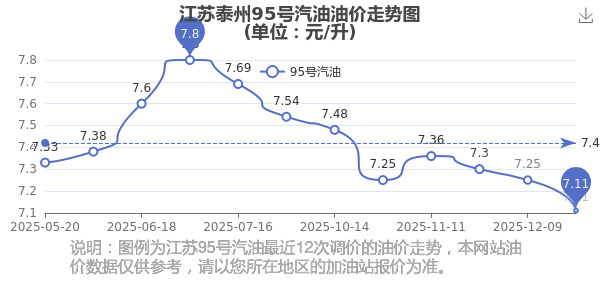 2025年江蘇泰州汽油價格歷史走勢圖