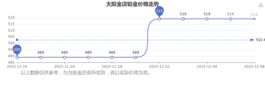 今日太陽(yáng)金店鉑金價(jià)格是519.0元/克。