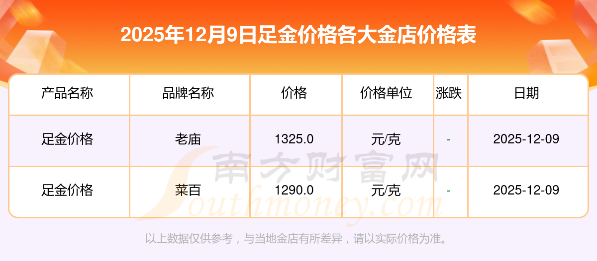 今日足金價(jià)格表_2025年12月9日各金店足金價(jià)格多少1克?一起來(lái)看看吧!