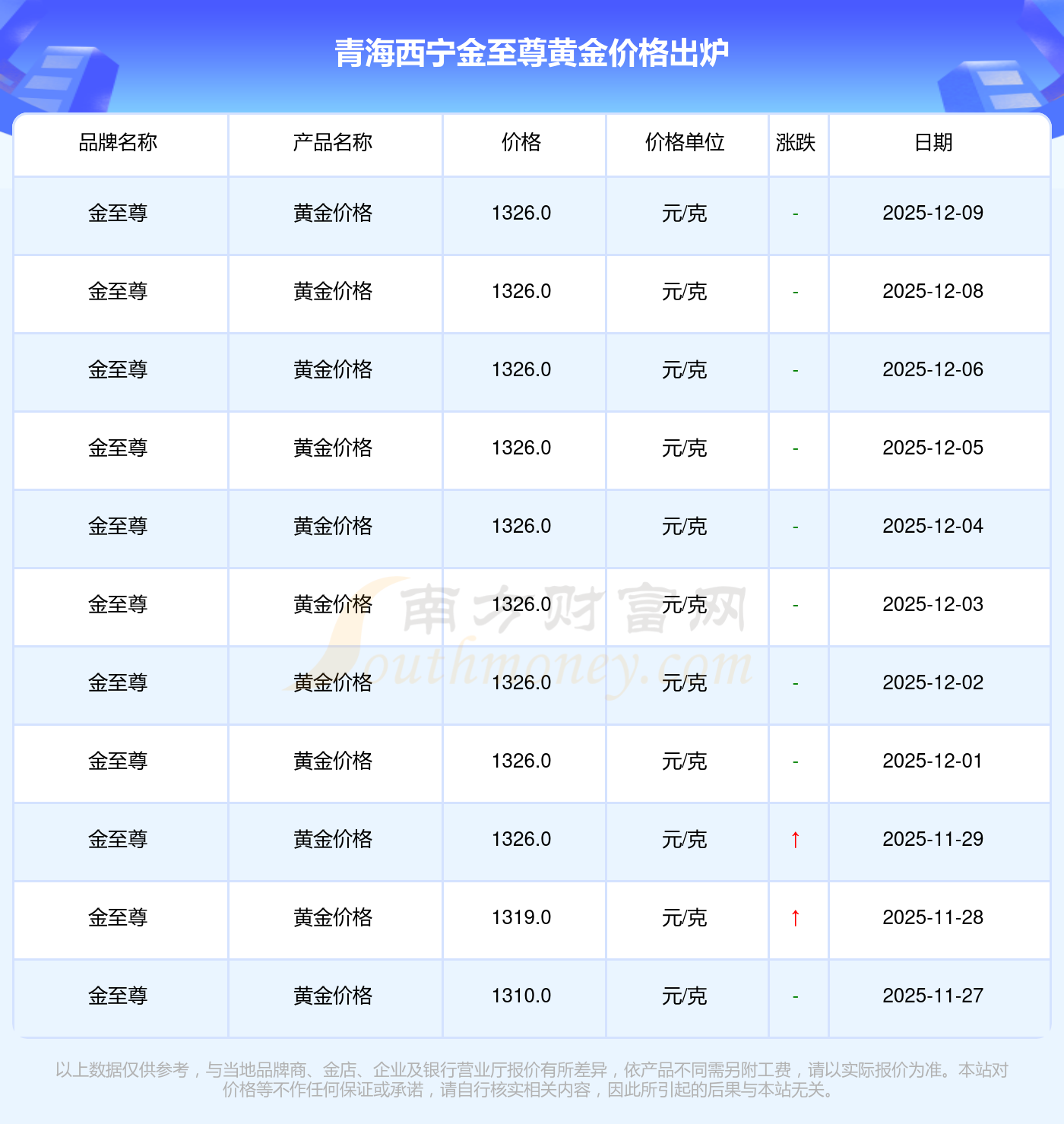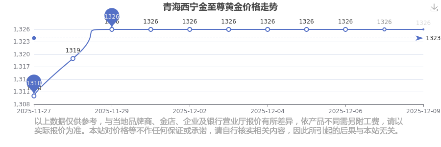2025年12月9日,今日青海西寧金至尊黃金價格:1326.0元/克。