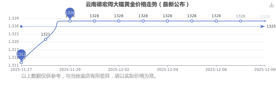 今日云南德宏周大福黃金價(jià)格最新為:1328.0元/克。