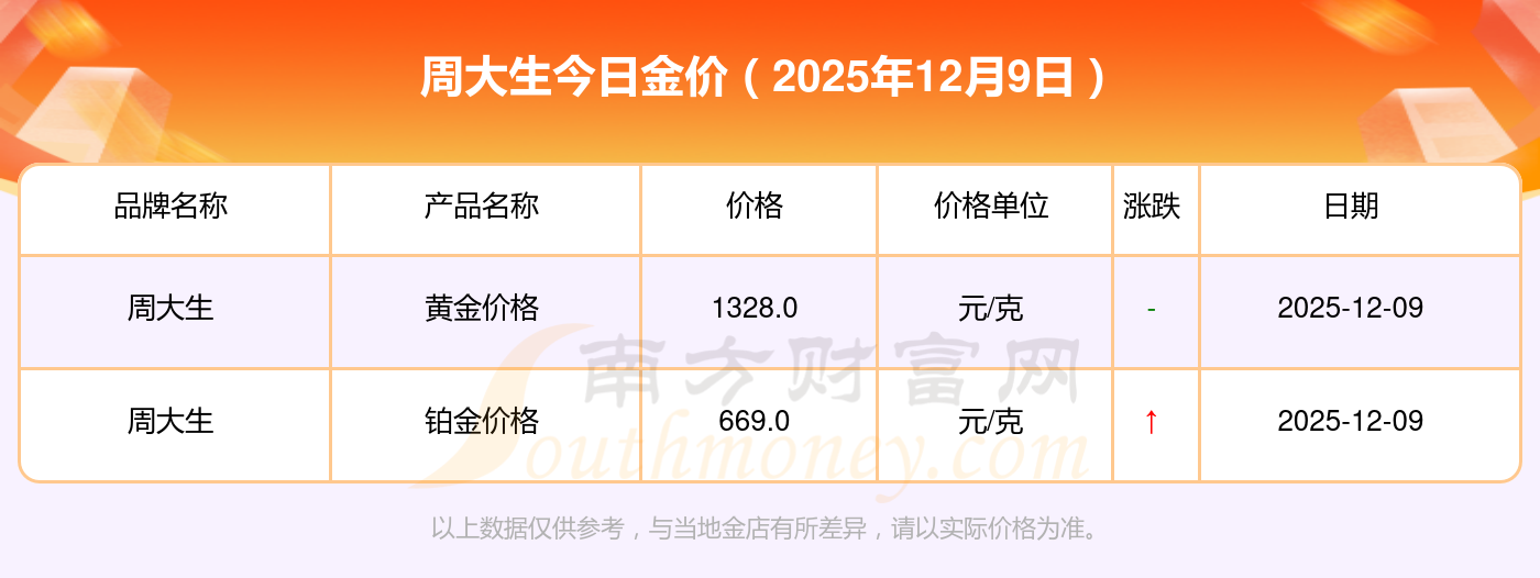 周大生今天的黃金價值幾何?詳情如下: