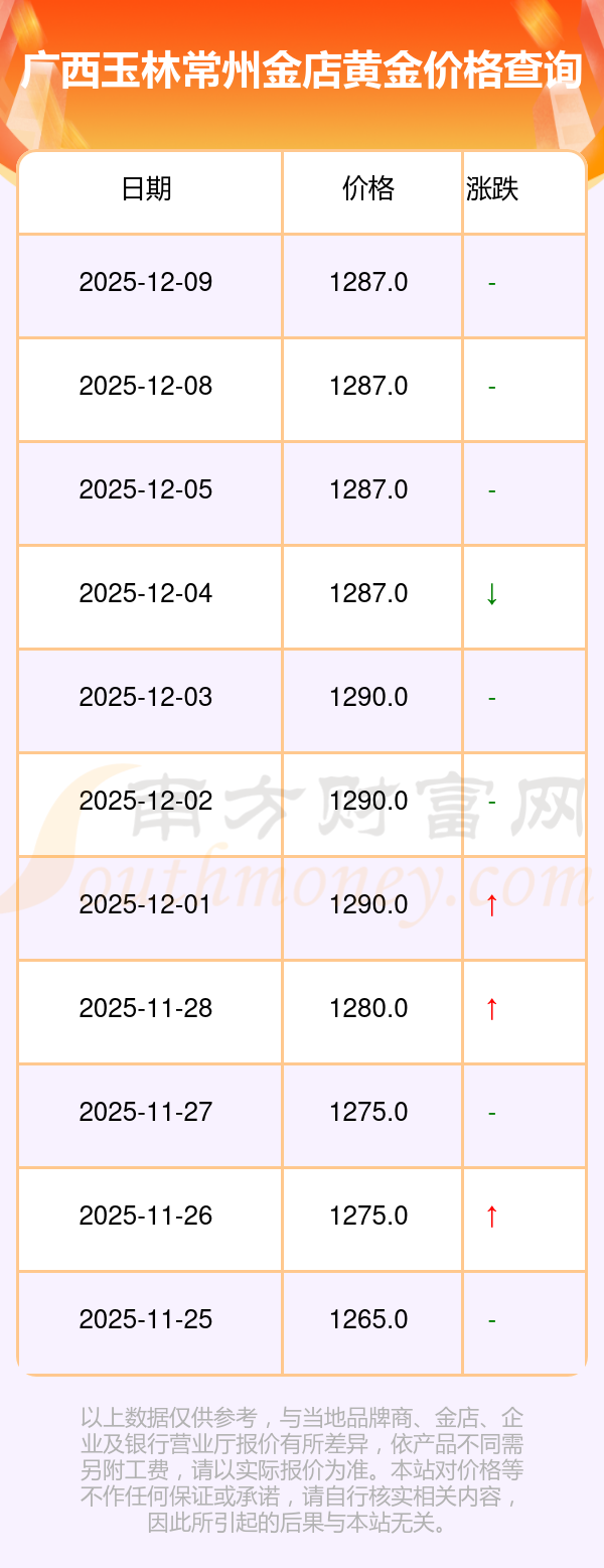 以上數(shù)據(jù)僅供參考,與當(dāng)?shù)亟鸬暧兴町悾堃詫嶋H價格為準(zhǔn)。