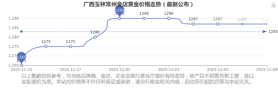 今日廣西玉林常州金店黃金價格為1287.0元/克。