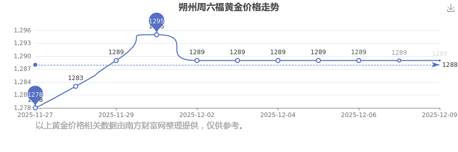 今日朔州周六福黃金價(jià)格是1289.0元/克。