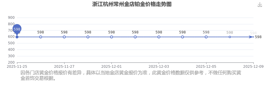 浙江杭州常州金店在 2025年12月9日的鉑金價格零售價格為 598.0元/克。