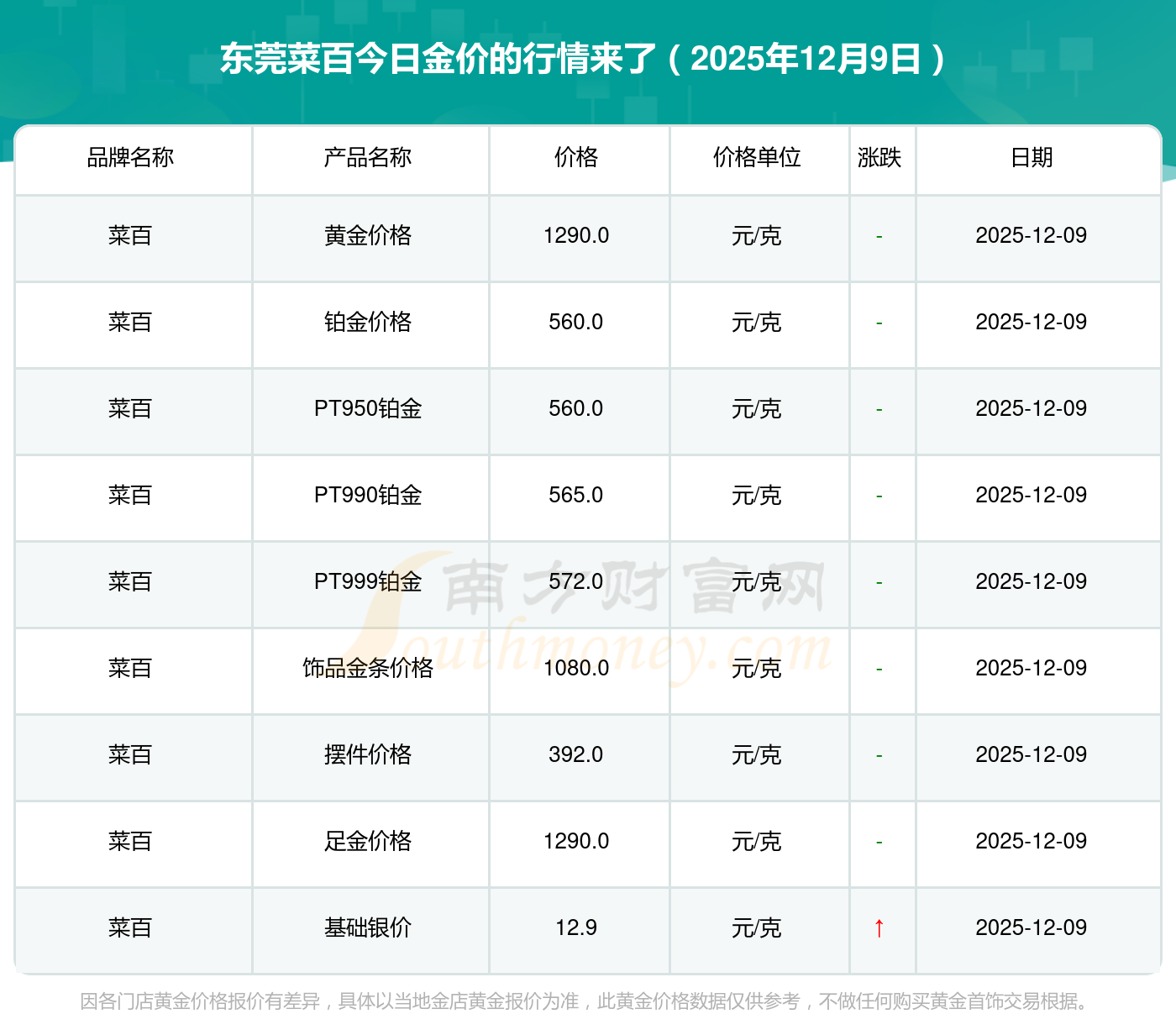 2025年12月9日東莞菜百每克黃金的市場價格是多少:黃金價格1328.0元/克,鉑金價格669.0元/克,飾品金價(內(nèi)地)1328.0元/克,黃金飾品(香港)46520.0,鉑金價格(香港)19190.0,金條價格(香港)41960.0,金條金價(內(nèi)地)1165.0元/克,黃金價格1289.0元/克,鉑金價格613.0元/克,PT999鉑金價格613.0元/克,金條價格1184.0元/克。