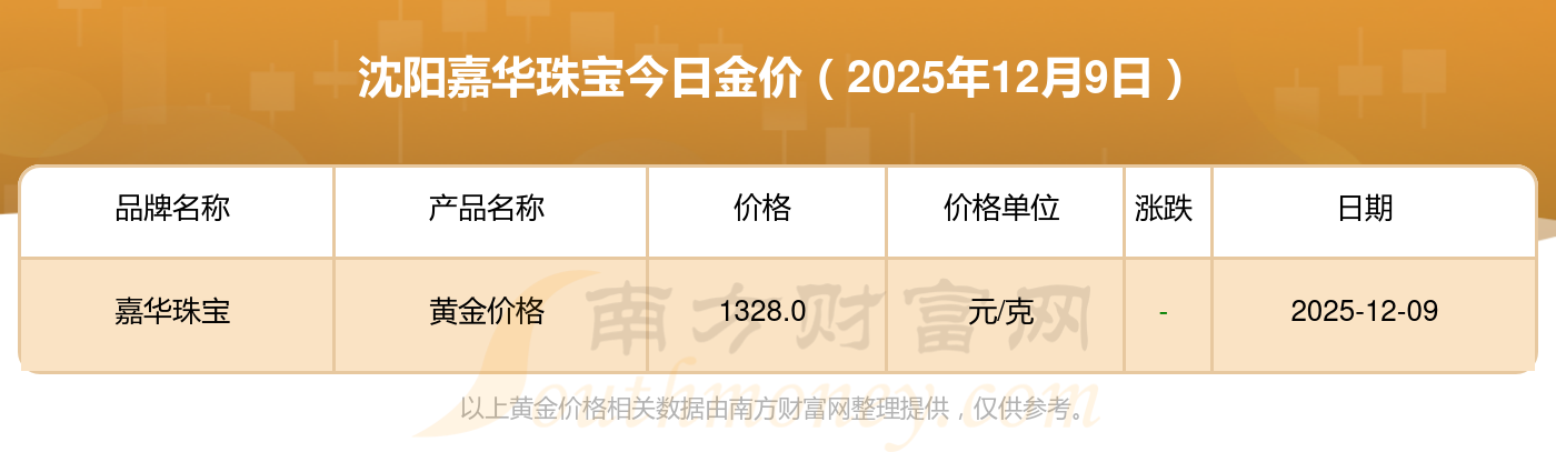 想查詢今日黃金價(jià)格,當(dāng)下黃金一克具體售價(jià)幾何?2025年12月9日沈陽嘉華珠寶最新價(jià)格:黃金價(jià)格1328.0元/克,鉑金價(jià)格669.0元/克,飾品金價(jià)(內(nèi)地)1328.0元/克,黃金飾品(香港)46520.0,鉑金價(jià)格(香港)19190.0,金條價(jià)格(香港)41960.0,金條金價(jià)(內(nèi)地)1165.0元/克,黃金價(jià)格1289.0元/克,鉑金價(jià)格613.0元/克,PT999鉑金價(jià)格613.0元/克,金條價(jià)格1184.0元/克。