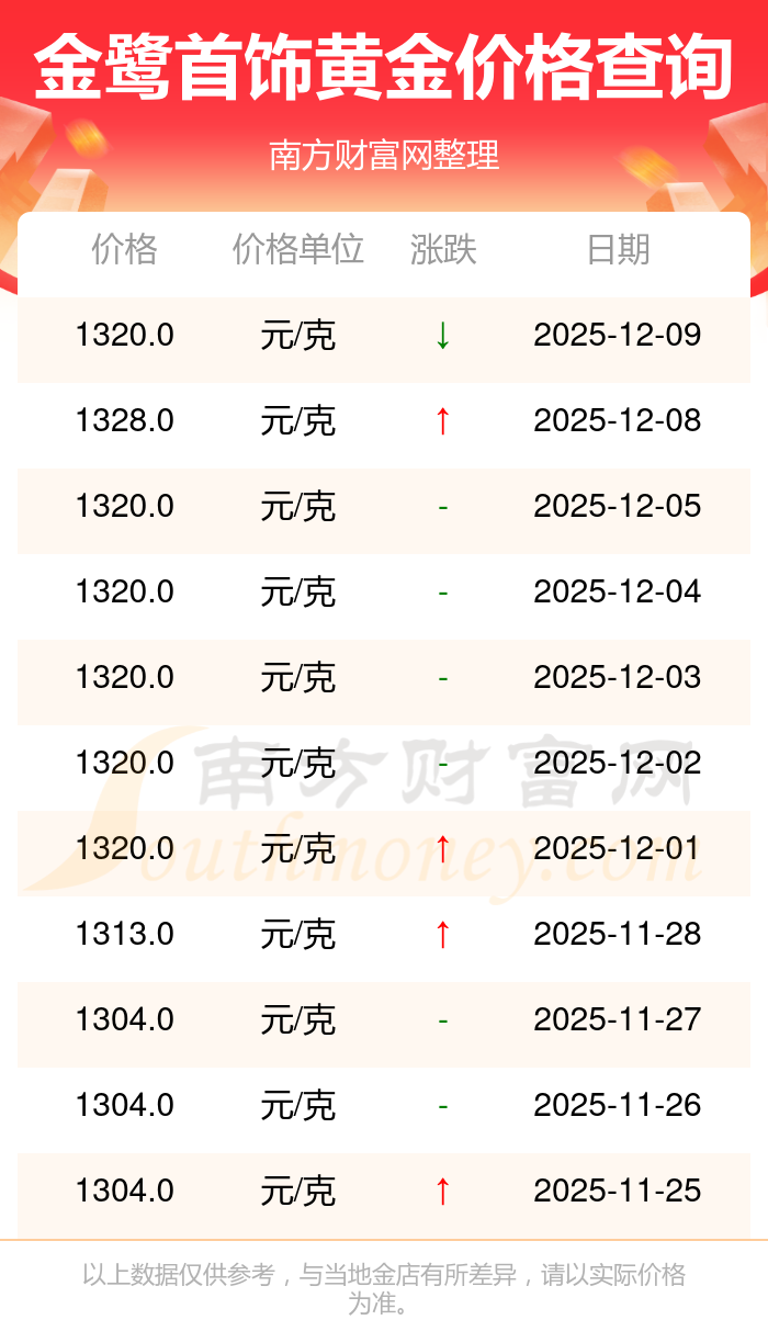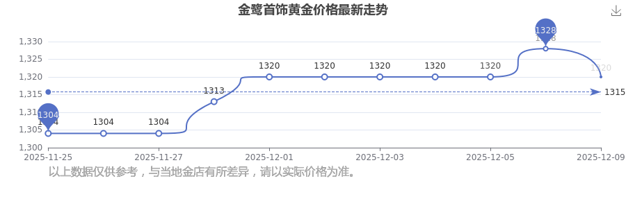 金鷺首飾 黃金價格今日最新的價位是1320.0元/克。