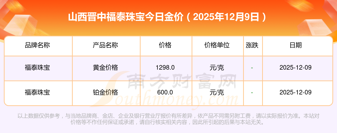 山西晉中福泰珠寶黃金價(jià)格多少一克
