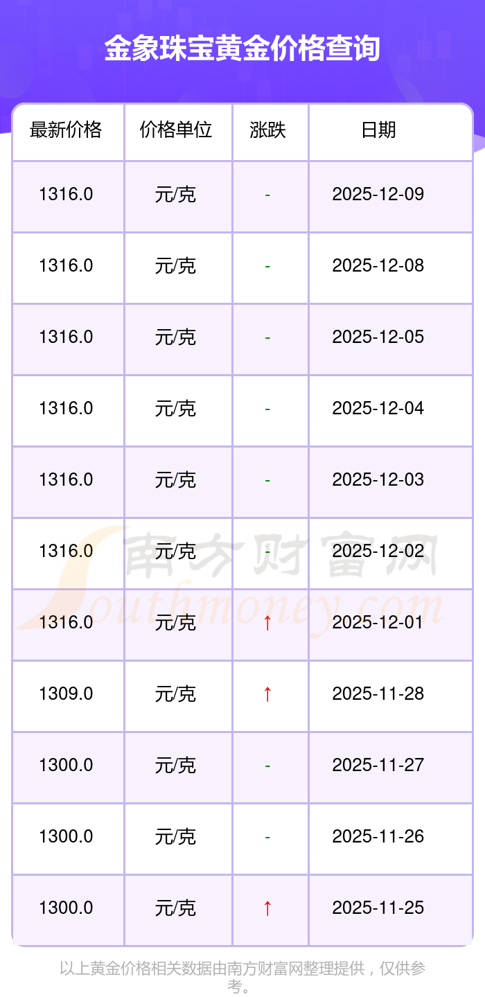 想查詢今日黃金價(jià)格,當(dāng)下黃金一克具體售價(jià)幾何?是優(yōu)良導(dǎo)電導(dǎo)熱材料的黃金,有良好的導(dǎo)熱特性。電子工業(yè)的特殊電路設(shè)計(jì)常采用它,因其化學(xué)穩(wěn)定性高、抗氧化性強(qiáng),能夠制作高精度電子元件。金象珠寶今日 黃金價(jià)格的最新市場行情價(jià)為1316.0元/克。
