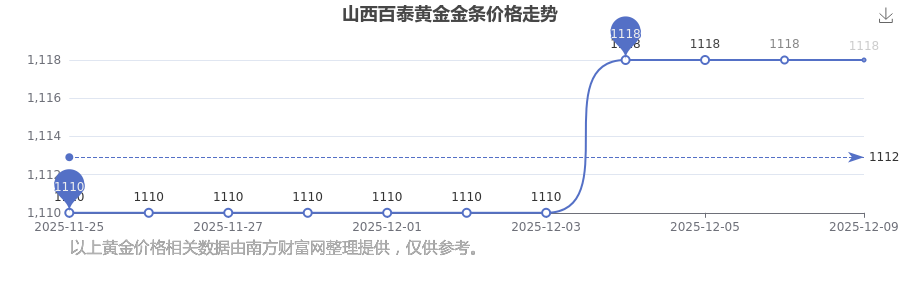 今日山西百泰黃金金條價(jià)格是1118.0元/克。