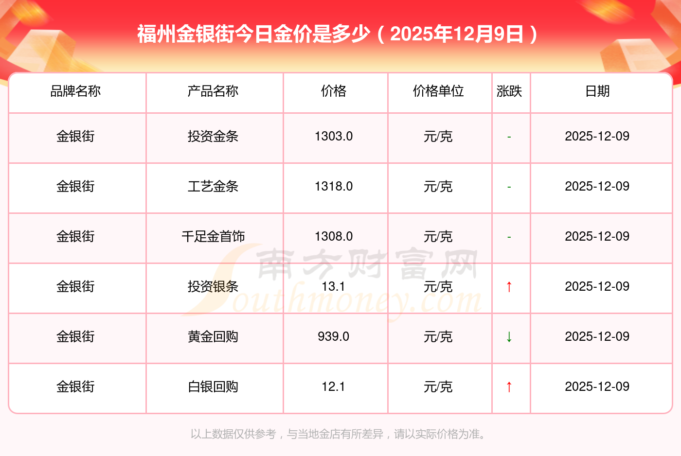 現(xiàn)在福州金銀街黃金價格表_福州金銀街黃金多少錢一克(2025年12月9日)