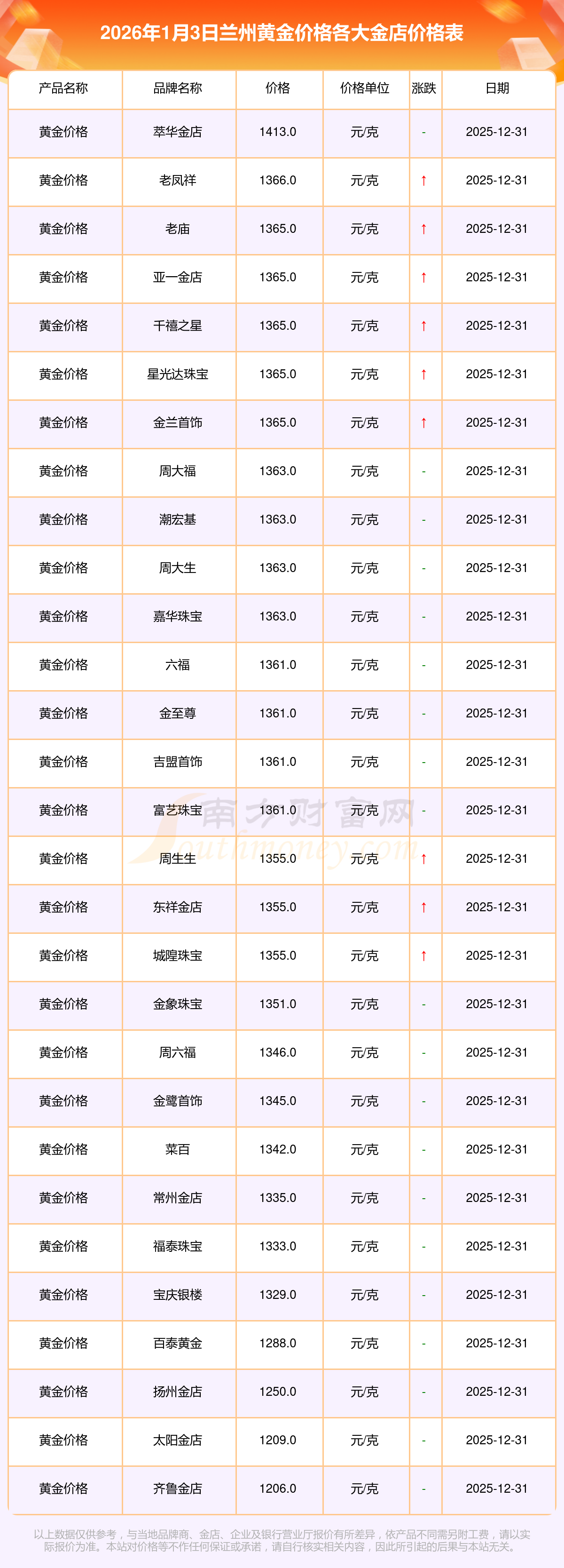 一、蘭州各金店黃金價格表最新是多少錢,今日黃金市場中,每克黃金定價是多少,請問今日,最新的黃金克價以表格形式的展示是怎樣的