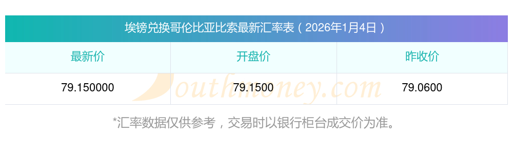 今日8埃鎊哥倫比亞比索兌換匯率_實時匯率(2026年1月4日)