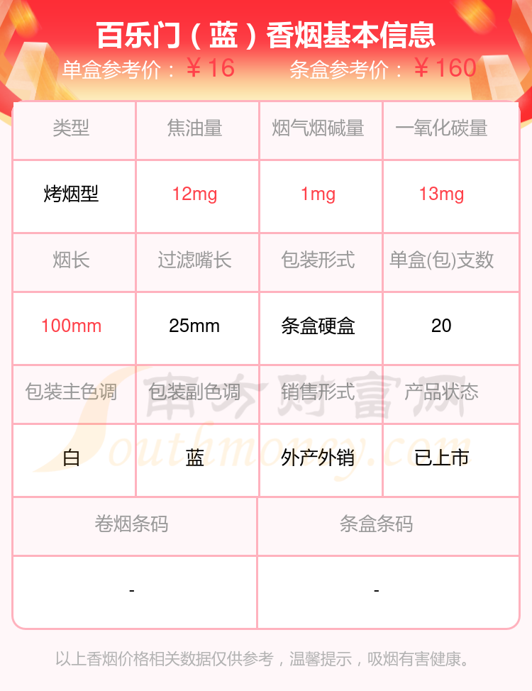 煙堿低于3mg的PARLIAMENT(百樂門)香煙有哪些?擇煙網(wǎng)為大家整理盤點,分別有:百樂門(普通)、百樂門(藍)、俄羅斯百樂門藍鉆、百樂門(100s)中稅版、百樂門(特醇)、百樂門(水藍)、百樂門(水藍中國版)、中免百樂門水藍100S、百樂門(水藍中免)、百樂門(特醇100免稅韓版)等,具體價格如下: