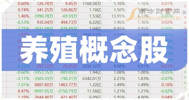 截至12月7日,A股涉及養(yǎng)殖的上市公司分布情況為:主板的有26家、中小板的有24家、創(chuàng)業(yè)板的有6家、科創(chuàng)板的有1家?!赌戏截敻痪W概念庫》為您整理了歸屬于養(yǎng)殖,并且在A股上市的公司。
