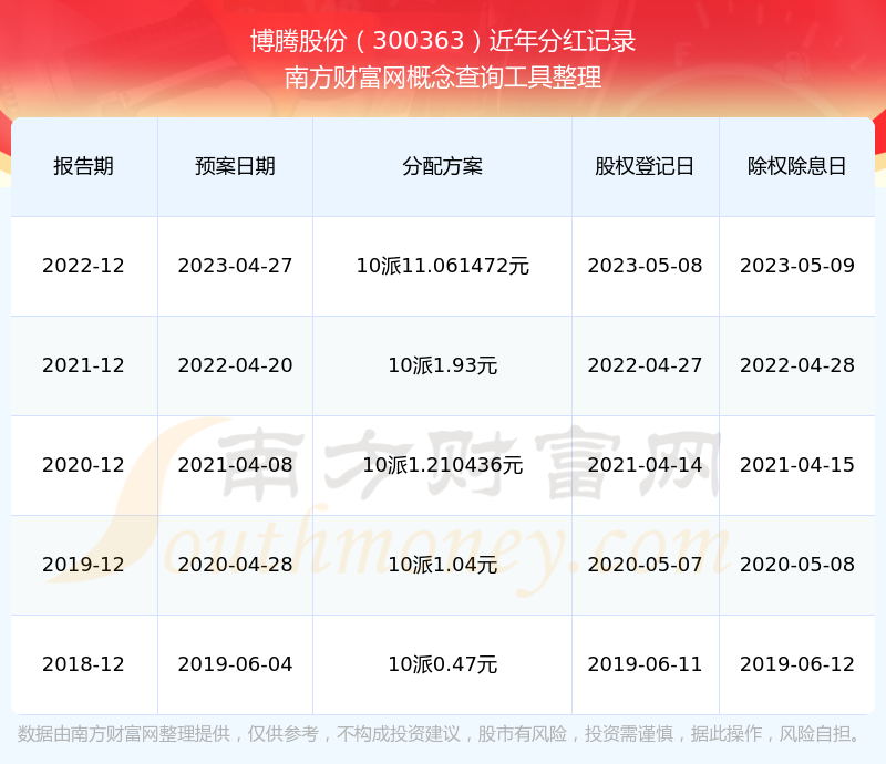 博騰股份最新一次公布的分紅方案:10派11.061472元。