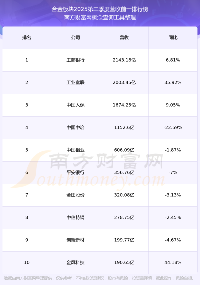 按照南方財富網(wǎng)概念查詢工具統(tǒng)計,該股所屬板塊為合金板塊,該板塊共有85只股票,華峰鋁業(yè)2025第二季度營收在該板塊中排名為第85名,該板塊2025第二季度營收排名前十的股票如下表: