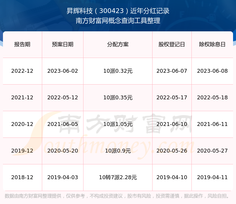 昇輝科技最新一次公布的分紅方案:10派0.32元。