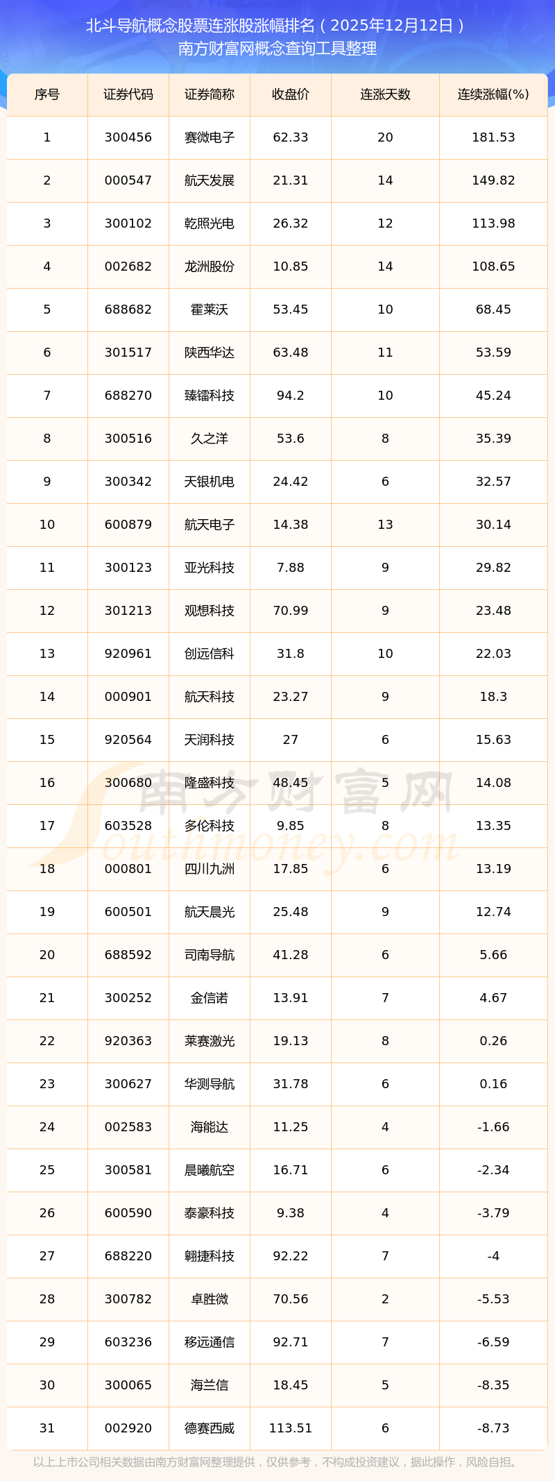 2025年12月12日北斗導(dǎo)航概念股票連漲股票漲幅排名