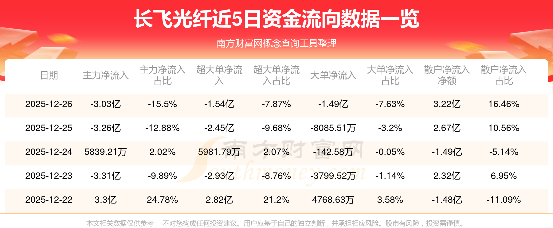 近5日資金流向一覽見下表: