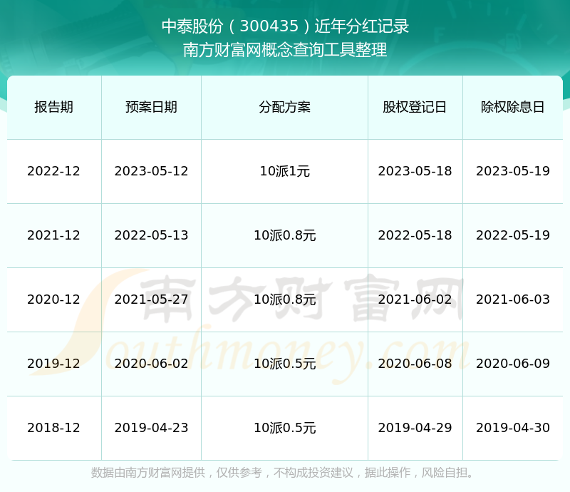一、中泰股份(300435)股票分紅記錄