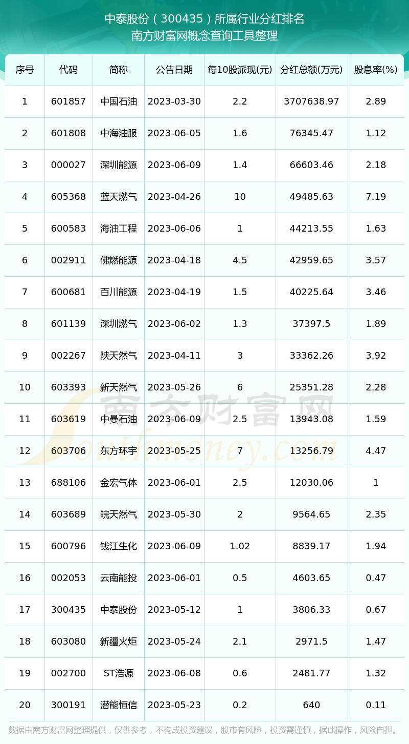 二、中泰股份300435行業(yè)分紅排名