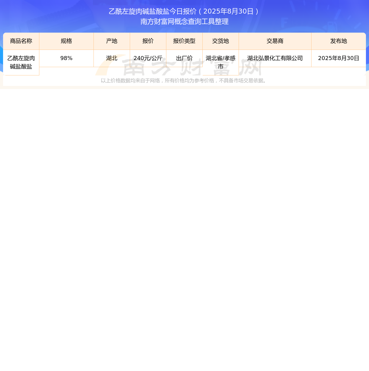 2025年8月30日乙酰左旋肉堿鹽酸鹽出廠價報價動態(tài)