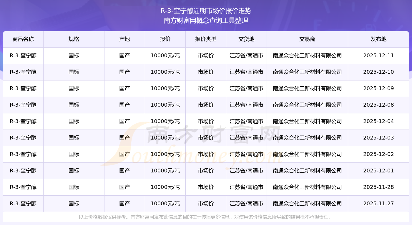 R-3-奎寧醇最新市場(chǎng)價(jià)報(bào)價(jià)
