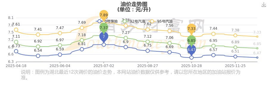 12月14日湖北鄂州92號(hào)汽油的價(jià)格為12月9日油價(jià)調(diào)整后的價(jià)格,具體是每升6.85元,相對(duì)上次調(diào)整時(shí)間11月25日的油價(jià)6.89元每升,共下調(diào)了0.04元,下調(diào)0.581%。下一輪油價(jià)調(diào)整時(shí)間12月22日24時(shí),距離現(xiàn)在還有8.36天。