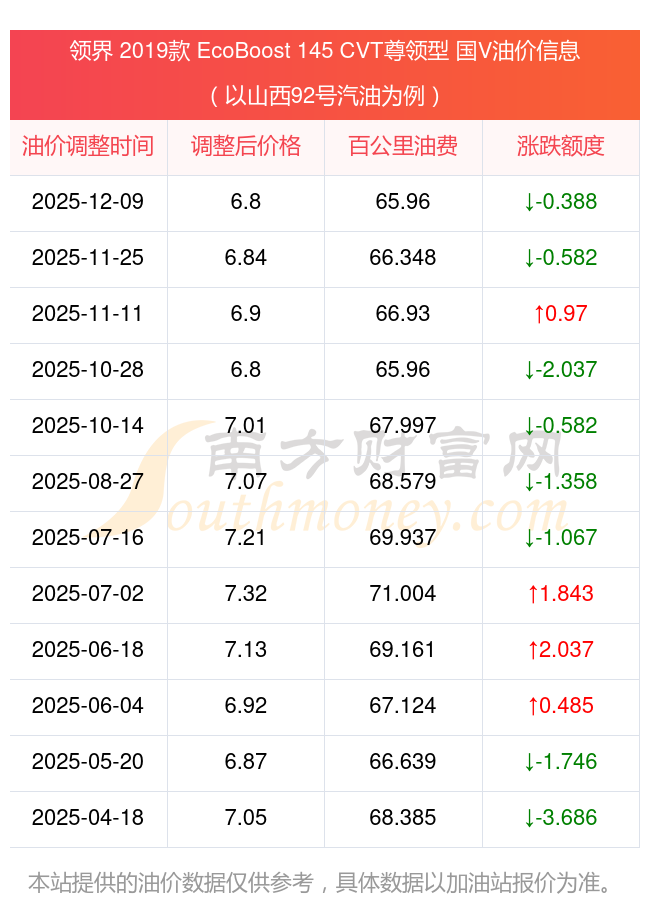 根據(jù)12月9日92號汽油最新調整價格6.8元/升來計算(以山西為例),該車型每百公里的平均油費是65.96元,上一輪11月25日調整價格6.84元每升來計算,每百公里的平均油費是66.348元,對比上一輪少花0.388元,下一輪的油價調整時間是12月22日24時。