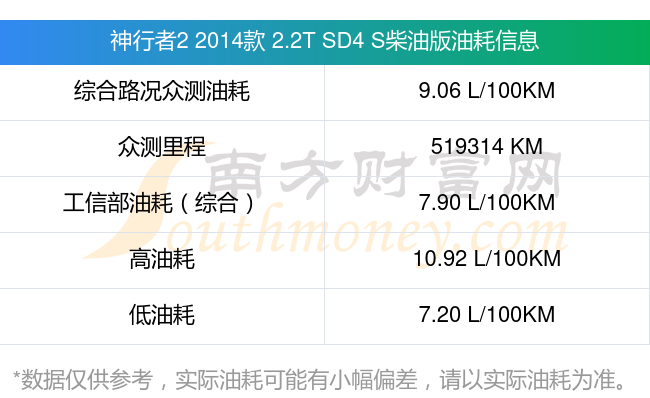 根據(jù)車(chē)主實(shí)測(cè)數(shù)據(jù),該車(chē)型低油耗為7.20升/百公里,高油耗為10.92升/百公里,綜合路況眾測(cè)油耗為9.06升/百公里,工信部綜合油耗為7.90升/百公里。